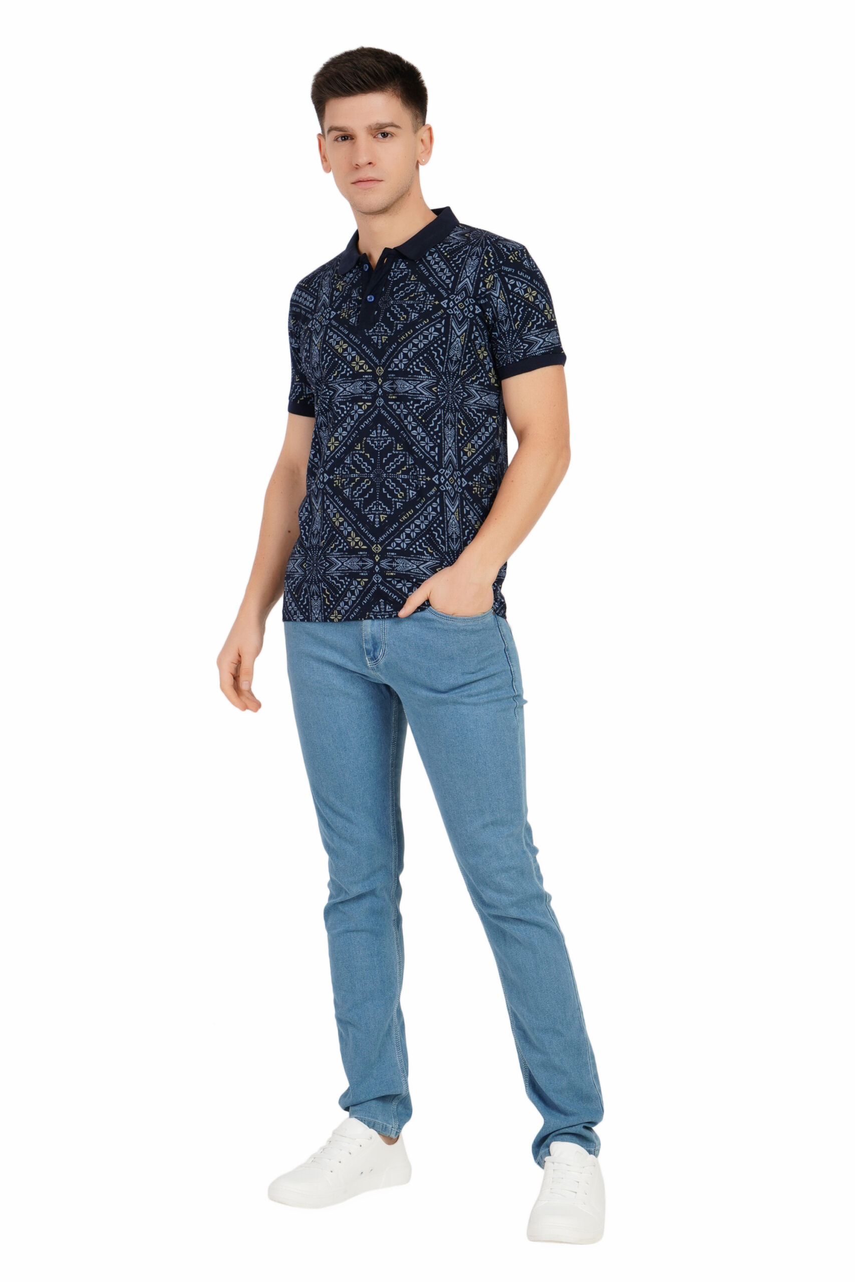 This abstract navy blue polo neck men’s t-shirt combines unique style with everyday comfort. Made from soft fabric, it’s perfect for any casual or semi-formal occasion. The eye-catching abstract design adds a modern twist to the classic polo, making it a standout piece in your wardrobe.