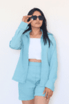 Includes: Button-up shirt and high-waisted shorts