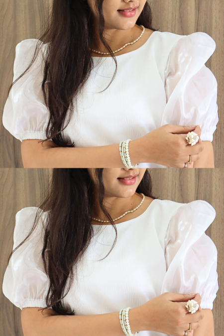 White Crush Co-Ord Set with Organza Balloon Sleeves